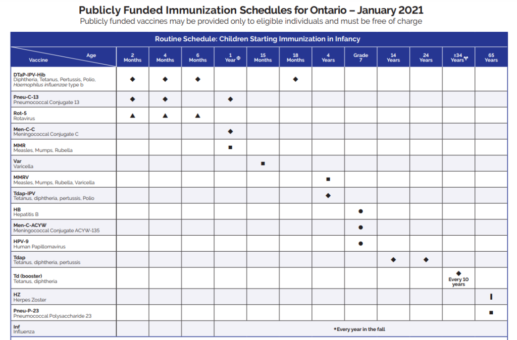 Vaccinations serve as a vital means of protecting children from infectious illnesses. The timing of these vaccinations may vary according to your geographical area; however, both the Ontario Ministry of Health and the Canadian Pediatric Society recommend that every child receive all vaccinations that are advised.